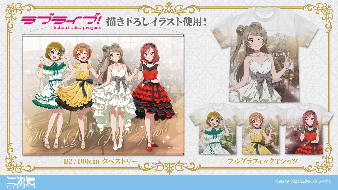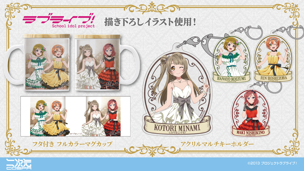 華やかなパーティードレス姿の描き下ろしイラスト!ことりの誕生日をお祝いする凛、真姫、花陽3人&ことりの新グッズが登場!