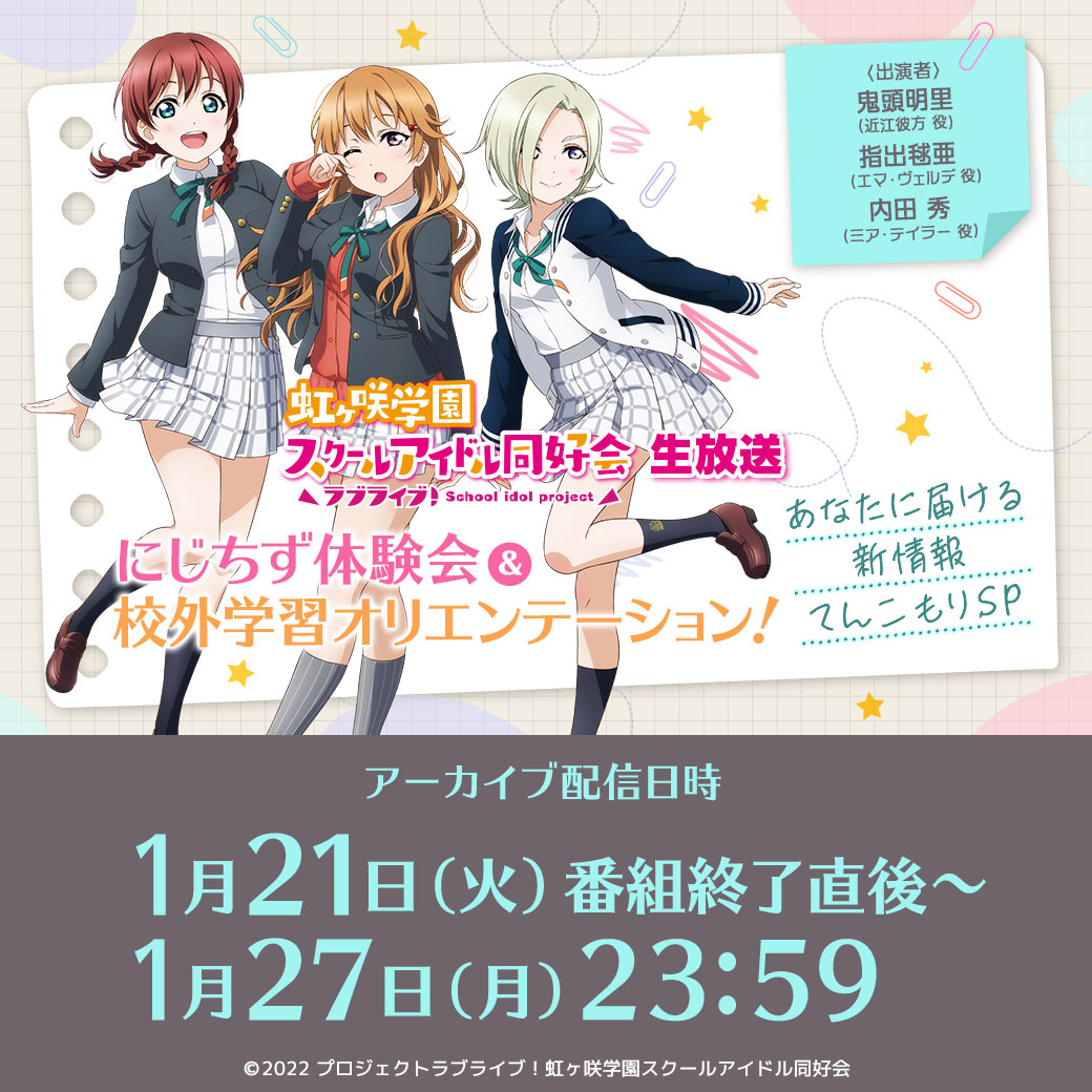 「ラブライブ!虹ヶ咲学園スクールアイドル同好会生放送 “あなた”と一緒に!にじちず♡ときめきレッスン!」のお知らせ!