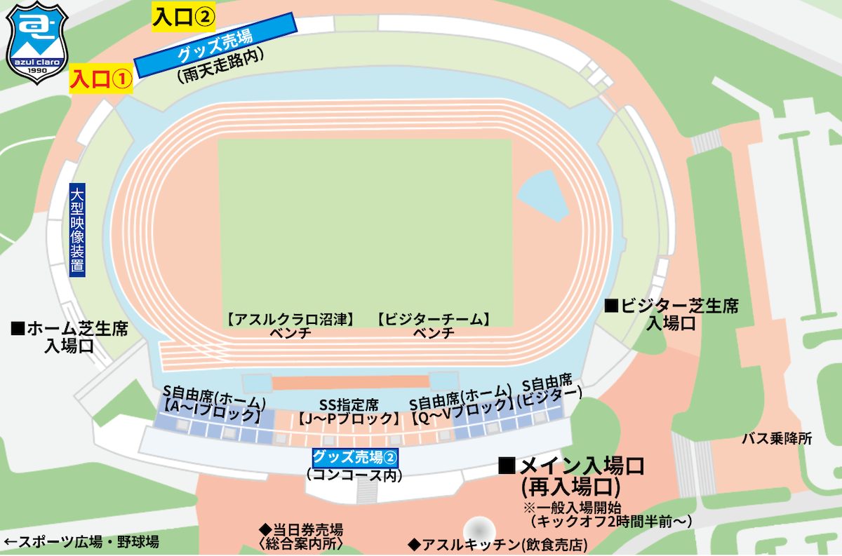 「入口②」は「アスルクラロ沼津オフィシャルグッズ」のみをお買い求めの方