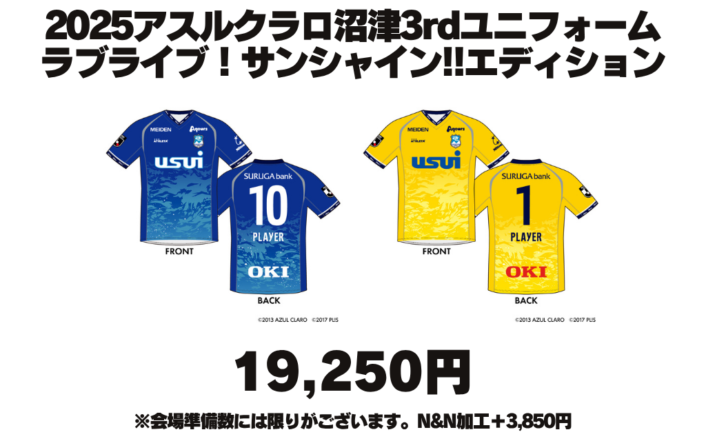 ■2025アスルクラロ沼津 3rdユニフォーム ラブライブ!サンシャイン!!エディション(FP/GK)