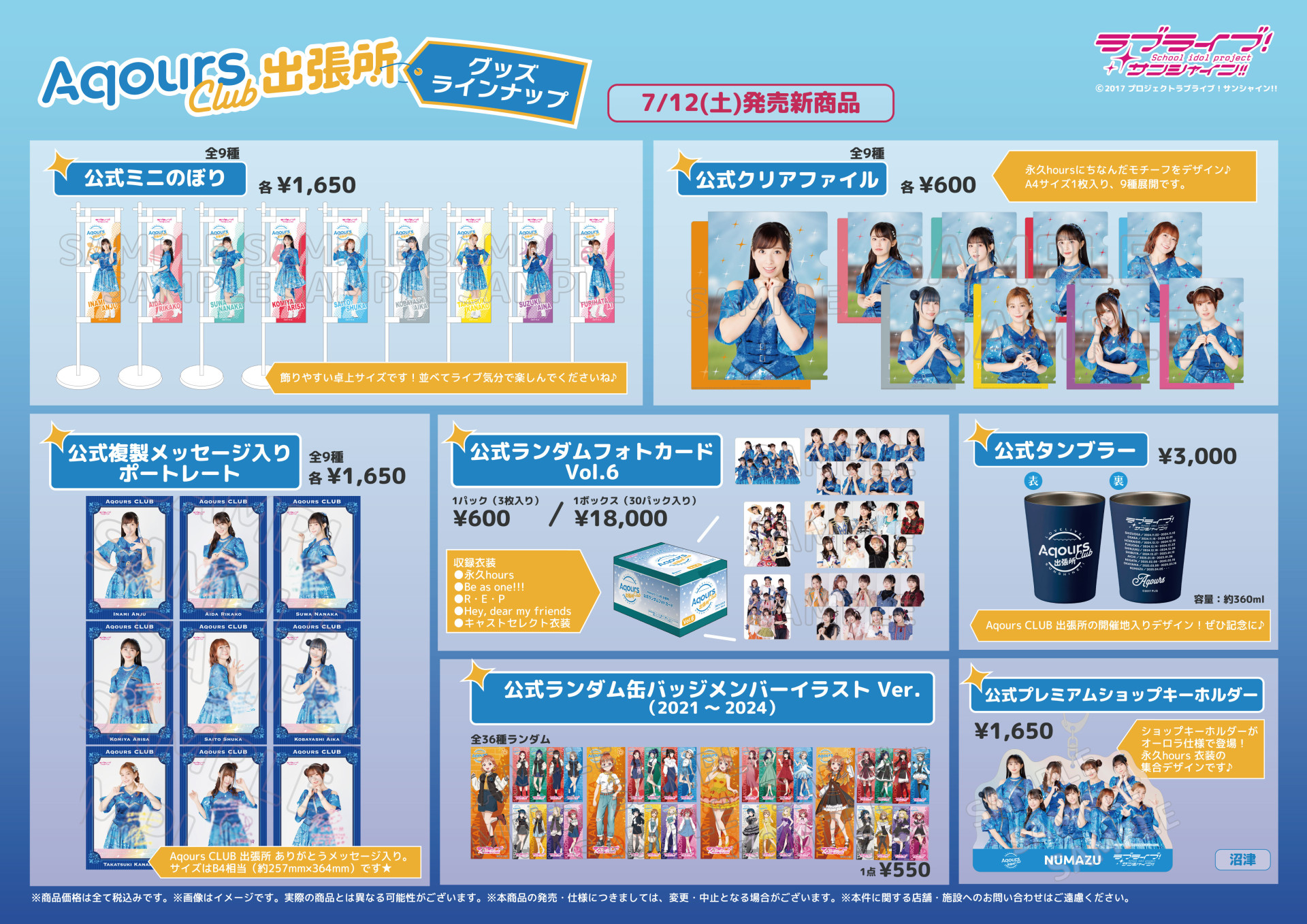 7月12日(土)よりBiVi沼津1階の『ラブライブ!サンシャイン!!&幻日のヨハネ プレミアムショップ』にて「Aqours CLUB 出張所」の新商品が発売!