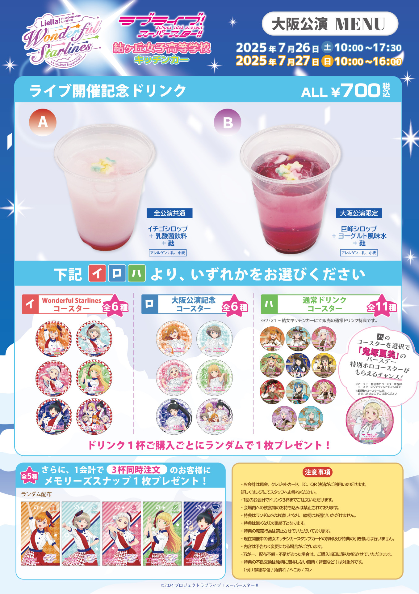 大阪公演と東京公演で特典が異なります。