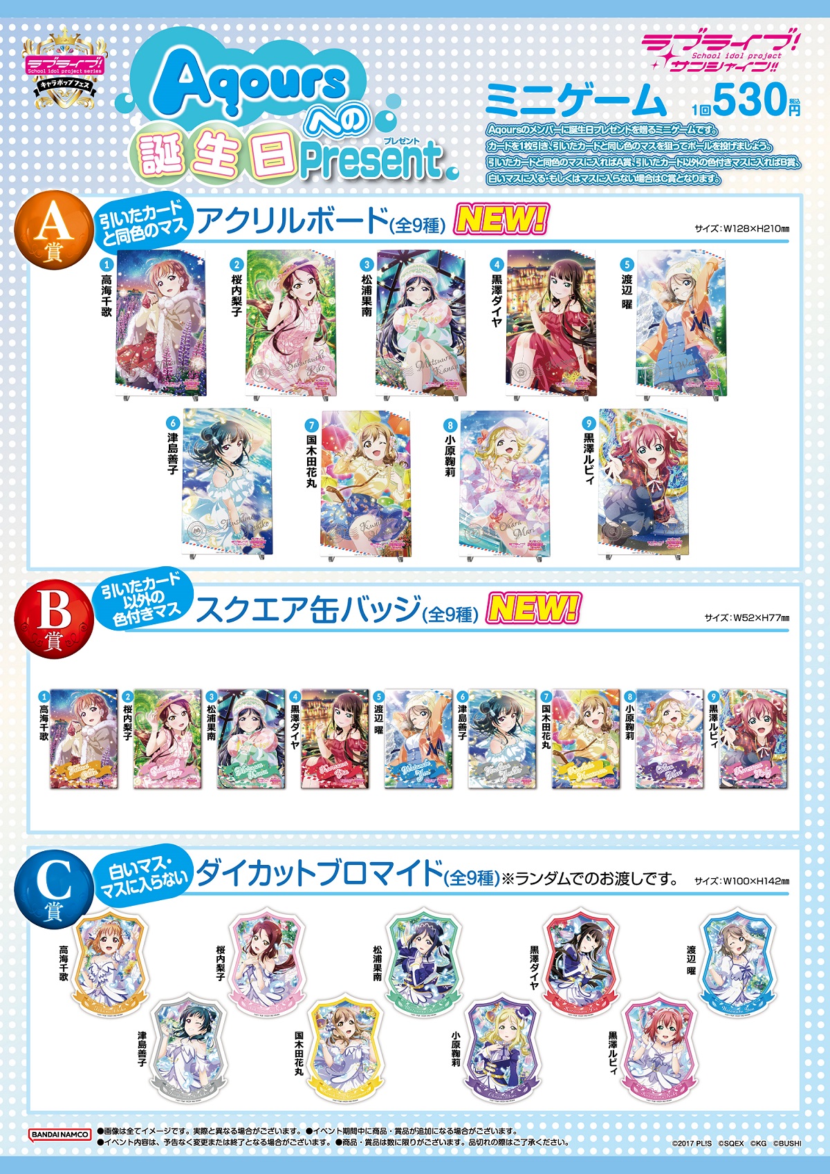 ミニゲーム(Aqoursへの誕生日Present.)A賞 アクリルボード