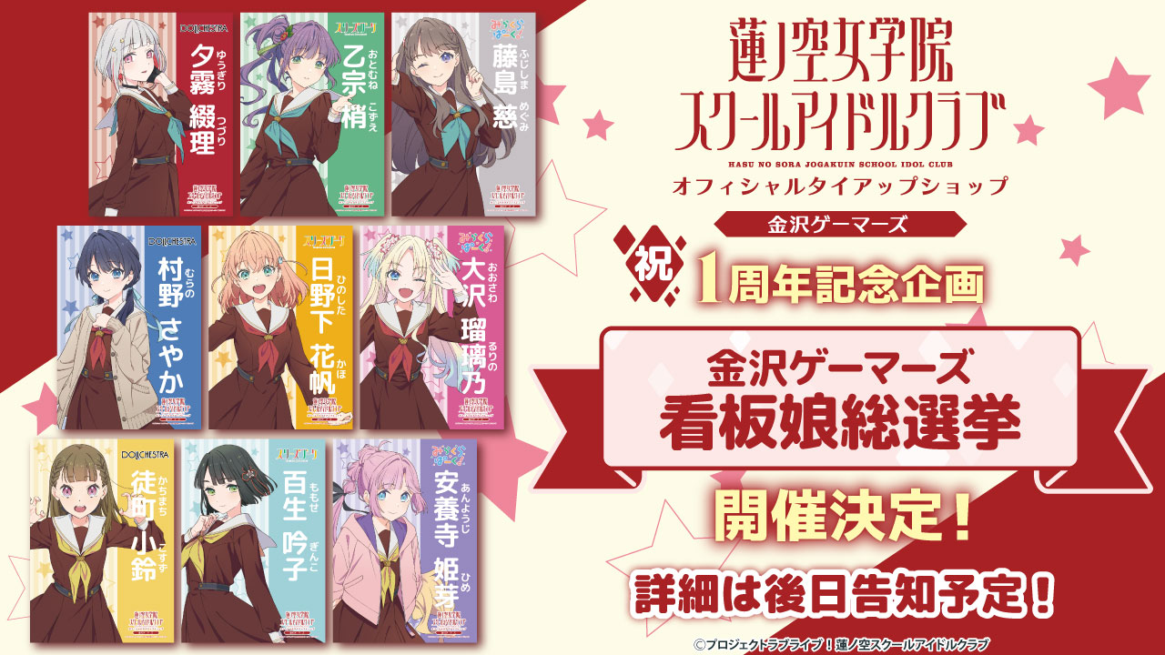 「ラブライブ!蓮ノ空女学院スクールアイドルクラブ」オフィシャルタイアップショップ金沢ゲーマーズ看板娘総選挙開催決定のお知らせ