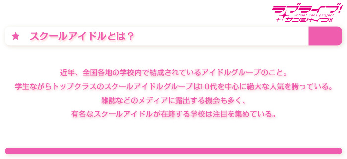 2年生の高海千歌を中心とした9人の少女たちが、大きな夢を抱いて立ち上がる。